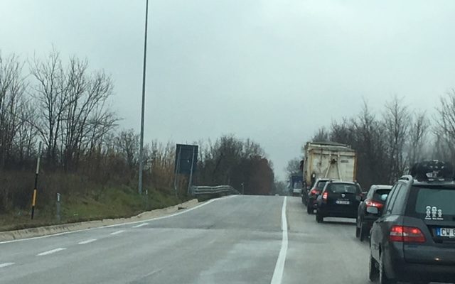 Una colonna di auto dietro un TIR sulla salita di “Capo La Costa” lungo la SS17