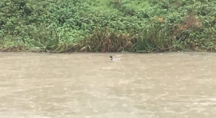 17 NOVEMBRE 2019 – Tempi di piena sul Pescara; e qualche affanno lo affrontano anche i serafici paperi che popolano il fiume principale d’Abruzzo, piuttosto impetuoso a Popoli. Non sembra preoccupato questo esemplare che poi volteggerà per addentrarsi in una oasi protetti dai gorghi e fare colazione.