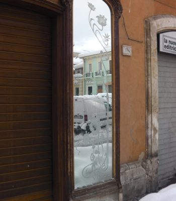 Nella foto del titolo l’antica mostra di una barberia, ormai destinata ad altro uso, in Piazza XX Settembre