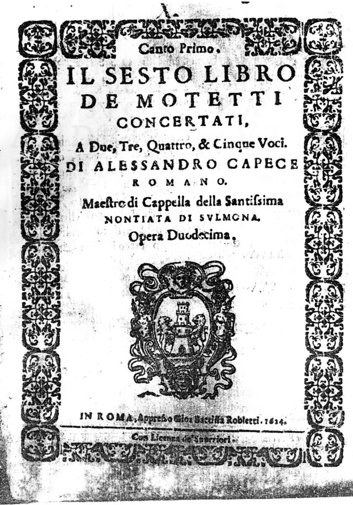 Op. duodecima, in cui il Capece si qualifica come “Maestro di cappella della Santiss. Nontiata di Sulmona.”