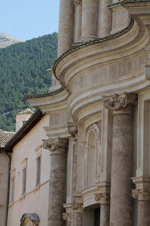 Le volute berniniane della facciata della chiesa nella Abbazia di Santo Spirito a Morrone, che non hanno bisogno di nessuna beneficenza per essere fruite dal turismo culturale