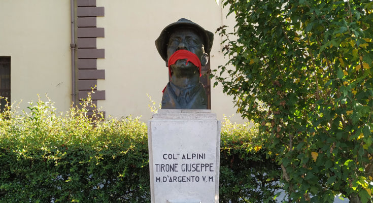 20 OTTOBRE 2019 – Un bavaglio apposto dai militanti di CasaPound sulle statue di tutta Italia: questa la simbolica protesta con la quale il movimento della”tartaruga frecciata” ha inteso continuare a tenere alta l’attenzione sulla censura in Rete, a 40 giorni dalla disattivazione delle sue pagine e dei profili dei suoi attivisti da parte delle piattaforme Facebook e Instagram e in attesa della prima udienza della causa intentata contro i siti di Mark Zuckerberg, fissata per il 13 novembre.