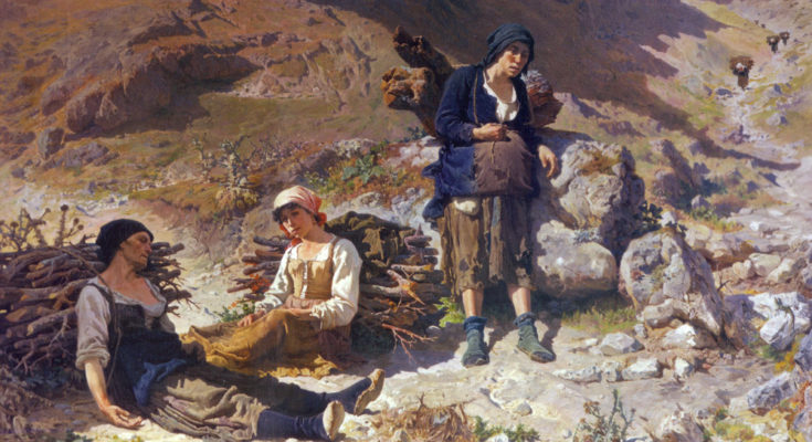 I contenuti sociali dell’impegno artistico del Patini si colgono soprattutto in questa attenta riproposizione del dramma delle donne che si caricavano di pesi quasi insostenibili per riportare legna da ardere dal bosco ai paesi dove riuscivano anche a venderla. Un decreto del prefetto dell’Aquila vietò questa pratica di confezionare e trasportare a spalla fardelli pesantissimi, nocivi alla stessa integrità fisica delle giovani donne. L’esposizione è una rara occasione di vedere il quadro al di fuori della città dell’Aquila e fra le stesse montagne che ne ispirarono la creazione, a Roccapia.