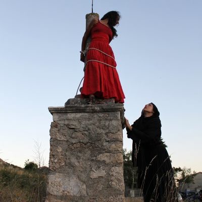 La scelta, impegnativa, di andare a cercare il teatro che millenni hanno tappezzato di boschi e di scoscesi passaggi; la necessità di lasciare l’auto un bel po’ lontano dalle case disabitate di Frattura Vecchia e, quindi, la scomodità per persone abituate a fruire della cultura negli sprofondamenti delle poltrone del teatro non-natura; la penuria di posti a sedere, da riservare alle donne e agli invalidi (come avrebbero imposto la buona educazione e gli avvisi sugli autobus), hanno fatto degli spettatori di Dacia Maraini un popolo eletto, di quella specie di cercatori di tartufi per i palati più raffinati, di quella “jerba” che Capograssi trovava solo sul suo Morrone. Il personaggio-rivelazione è stato di certo Camilla Dell’Agnola, non solo perchè era la protagonista, quanto perchè ha saputo esprimere il vigore della Mila di D’Annunzio e di Maraini senza nessun filtro, quasi fosse un personaggio che il Vate avesse ripreso, privo di intermediazioni, da quelle raccolte di cercatori dell’Ottocento tra le tradizioni dei pastori.