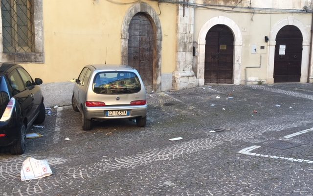 2 GENNAIO 2019 – Fino a quando l’amministratore-unico-nel-suo-genere, Vincenzo Margiotta, penserà a stampare giornali inutili e a introdurre improbabili modifiche allo statuto del Cogesa, è facile che le vie di Sulmona si presenteranno come questo Largo Palizze stamane alle 9: una pattumiera. Tra l’altro, impegnati a leggere l’avvincente calendario della raccolta dell’immondizia differenziata, distribuito casa per casa, abbiamo scoperto ieri, caso per caso, che dal giorno di Natale fino al prossimo martedì, cioè per due settimane, non è prevista la raccolta della carta. Nei giorni di maggiore necessità, i Sulmonesi forse dovranno bruciarla nei camini per non averla in casa. Questo sarà il nuovo modello di smaltimento a chilometro zero?