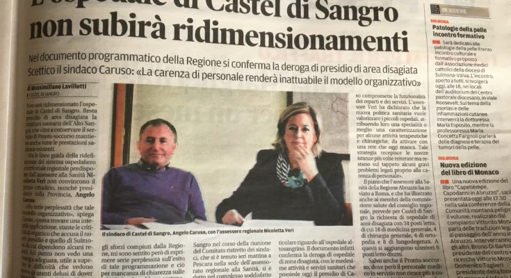 23 NOVEMBRE 2019 – Fino a due anni fa sconosciuto oltre il ponte sul torrente Zittola (anche perché dovunque si presentasse gli dicevano “Zitto là !”), da quando si è sposato politicamente con Andrea Gerosolimo il sindaco di Castel di Sangro, Angelo Caruso, vive la sua stagione e “sta sul pezzo” (nel senso che ogni giorno “Il Centro” gli dedica un pezzo), al punto che, non sentendosi più zittire, parla su tutto. Oggi esprime perplessità sul piano dell’assessora regionale Verì per gli ospedali. E lo fa da politico consumato (non si è mai acceso, ma è già consumato come il sigaro che mordicchia con aria dandy), di quelli che conoscono persone e ambienti; di quelli che l’aria sorpresa la lasciano agli altri e che capiscono prima che l’interlocutore si esprima (forse per anticiparlo sullo Zittola…).