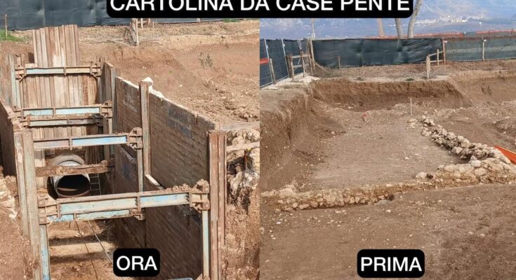 14 APRILE 2026 – Perché possano venire i brividi a quelli che credono nell’importanza della tutela dei reperti storici e, quindi, delle basi della cultura da consegnare alle prossime generazioni, ecco il raffronto tra quella che era un’area di “Case Pente”, con le basi in muratura di costruzioni di epoca romana e quello che è adesso lo stesso sito, stravolto dal collocamento del “tubo” per il metanodotto. La documentazione, ancora una volta, è fornita da Mario Pizzola, del “Coordinamento per il Clima fuori dal Fossile”, che aggiunge osservazioni in ordine alla cogenza delle norme per la tutela dei beni storici e artistici: riporta proprio le norme del codice penale che, aggravando negli ultimi anni le pene per chi commette questo tipo di reati, vengono applicate per tutti “ma non per la Snam”, come annota con amarezza. Prende ad esempio una pronuncia contro alcuni manifestanti che agli “Uffizi” affissero fotografie con scotch di carta (quindi senza imbrattare le opere d‘arte), rimanendo condannati a pagare una multa di 20.000,00 euro e indica, all’opposto, tutto quello che non si è fatto a Sulmona, anche da parte della Soprintendenza competente, per evitare lo scempio dei reperti rimossi, solo perché le ragioni del gas superano tutte le ragioni della tutela artistica, storica, in genere culturale.