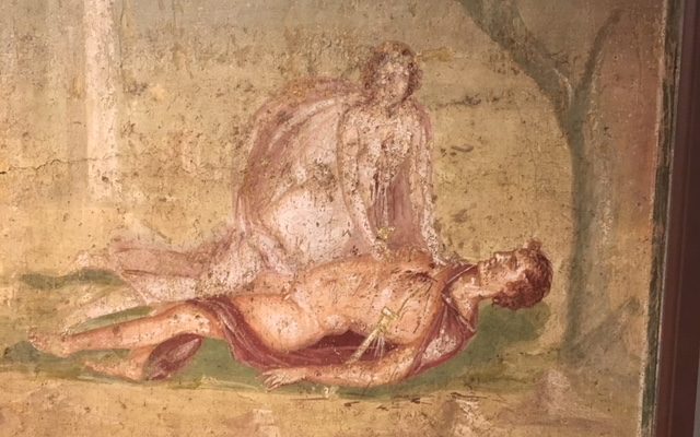Domani alle ore 18 nel Cinema Pacifico si vedranno i frutti del laboratorio di scenografia, di uno di sartoria e di uno di recitazione e prassi scenica: tre diverse applicazioni che prendono spunto dall’opera teatrale della drammaturga scozzese Sharman Macdonald “After Juliet”, la cui premessa è proprio scandagliare cosa sia successo ai Capuleti e ai Montecchi dopo la morte di Romeo e Giulietta. Speriamo ci sia un piccolo richiamo, una specie di riconoscimento SIAE, a Ovidio, visto che Shakespeare riprese da Piramo e Tisbe (e dove volete che si trovassero, se non nelle Metamorfosi?) la favola di chi non volle sopravvivere credendo morta l’amata. Nella foto del titolo un affresco sul tema di Piramo e Tisbe mostrato alle Scuderie del Quirinale durante la mostra dedicata a Ovidio nel gennaio 2018.