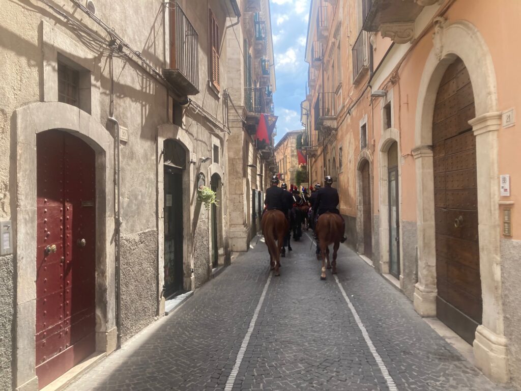 30 LUGLIO 2022 – Per quanto siamo in un anno che finisce per 22, non ci sono pericoli da un corteo equestre di polizia e carabinieri che da Via Roma si dirige verso il palazzo del sindaco, in Via Mazara. Il putsch non si farà, per il semplice fatto che cavalli e cavalieri gireranno su Corso Ovidio.