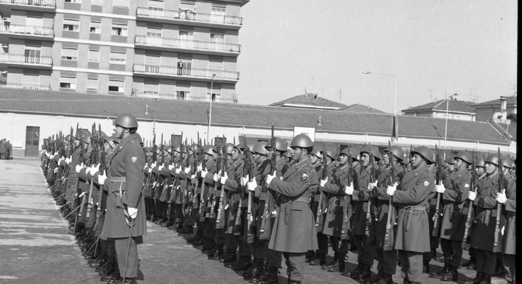 Nella foto del titolo la caserma “Cesare Battisti” durante un giuramento negli anni Settanta, tempo di leva obbligatoria.