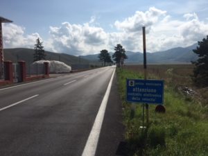 …e questo è il cartello (rasoterra) che dovrebbe avvisare gli automobilisti del rilevamento della velocità