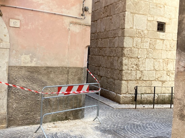 IMBARAZZANTE CROLLO DI CORNICIONE NEL CENTRO STORICO DA RENDERE PIU’ BELLO E PIU’ COLORITO CHE PRIA