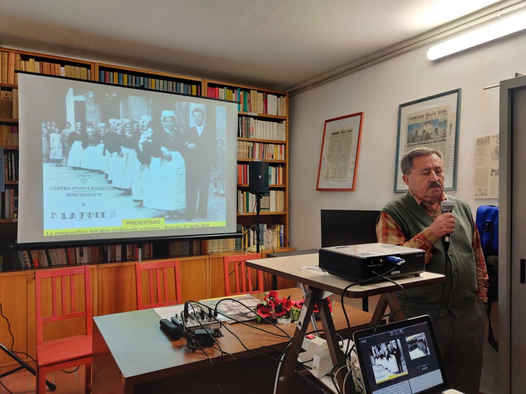 30 APRILE 2024 – Marinello Mastrogiuseppe, con il suo volume di fotografie sui riti e tradizioni d’Abruzzo, vincitore della XXII edizione del premio giornalistico “Guido Polidoro”, ha aperto la seconda stagione delle attività culturali al “Centro Studi e ricerche Nino Ruscitti” di Bugnara. Illustrando la sua raccolta di immagini, ha notato come la gran parte dei riti tradizionali presenti nel volume appartengano al territorio peligno: «Per necessità editoriali ho dovuto, mio malgrado, selezionare solo una piccola parte di eventi e riti popolari presenti nel territorio. Attraverso la fotografia ho voluto restituire questo senso di evanescenza, immaginando l’azione del tempo su pratiche collettive che si estendono a volte anche per secoli. Le nostre tradizioni sono la testimonianza di una storia e di una ricchezza culturale enorme che mi auguro possano, nella loro varietà e unicità, essere valorizzate nel loro complesso».