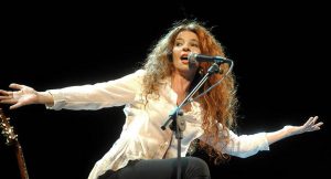 17 GIUGNO 2018 – Teresa De Sio ha aperto il suo concerto in Piazza XX Settembre ricordando la comune vicenda della terra sulmonese con quella napoletana nel grande Regno delle Due Sicilie ed ha reso omaggio “a tutti i briganti e le brigantesse” invitando i presenti ad un caloroso applauso. Poi, per sottolineare i contenuti della sua musica, ha intonato una delle più belle canzoni del Sud, dedicandola al suo autore: Matteo Salvatore (al quale, peraltro, si richiama costantemente anche Eugenio Bennato, con i suoi molti album sul regno “difeso solo dalle Sirene”).