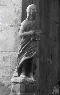10 APRILE 2010 – L’inquinamento atmosferico aveva reso friabile la pietra e le aveva sfigurato il volto: Ma la statua allo spigolo del Palazzo di Giovanni Veneziano aveva un suo tono che la rendeva solenne, con la veste agitata dal vento.