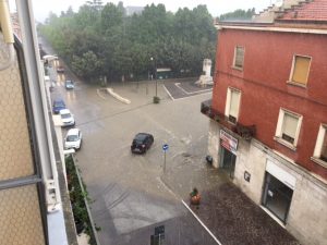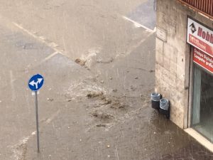 8 MAGGIO 2018 – Sono bastati dieci minuti di temporale per allagare tutta Piazza Tresca, cosa che non si è mai verificata neanche nelle peggiori precipitazioni estive. Verso le 15,45, per la evidente occlusione di un canale che scorre al di sotto del Corso e poi della stessa piazza, è zampillata una vena di pestifera acqua che ha preso… possesso di tutta la piazza lasciando a decine di metri un odore nauseabondo, impedendo il transito dei pedoni e rendendo difficile quello delle auto. La ordinaria amministrazione di questa città è lasciata a persone ed enti che non sanno fare neanche questo.