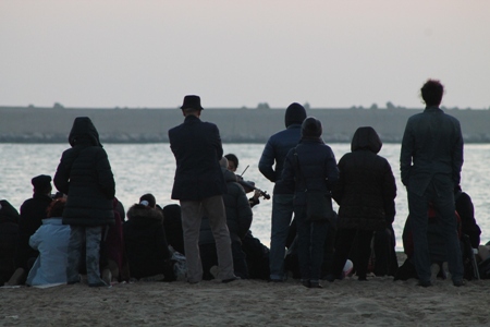 Nella foto del titolo una rappresentazione sulla spiaggia di Pescara vicino al porto, all’alba.