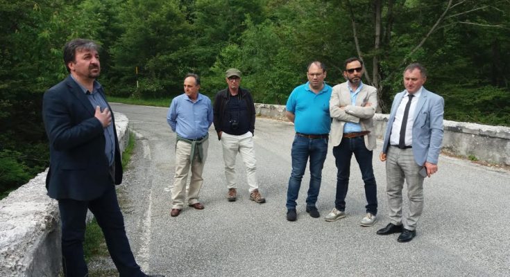 11 OTTOBRE 2020 – Il Presidente della Provincia e sindaco di Castel di Sangro, Angelo Caruso (primo a destra nella foto sul ponte del Giovenco), ha espresso il suo vibrante dissenso per non essere stato invitato alla tappa del Giro d’Italia oggi a Roccaraso. Escluso che si aspettasse di essere invitato come concorrente, si sarebbe accontentato di svolgere il ruolo di mascotte, che tanta fortuna ha portato a chi, dal 1909, ha abbinato il suo profilo a quello della gara più popolare d’Italia. Se proprio neppure da mascotte poteva passare, l’importante per lui era apparire e, con una diversa maturazione del concetto di parità di genere, avrebbe potuto elargire un bacio al primo arrivato e per questo pare si fosse munito anche di un mazzo di fiori.
