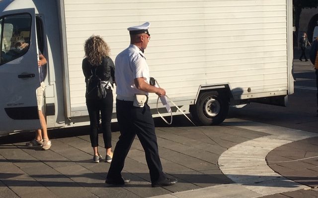 DECINE DI VENDITORI ATTENDONO DI ESSERE DESTINATI AGLI SPAZI DI PIAZZA GARIBALDI – C’E’ UN SOLO VIGILE CON LA FETTUCCIA