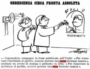 E le ripetizioni che deve impartire a tutti i presidenti che ha messo negli enti sovra-comunali? Si deve rileggere le collezioni del “Candido” di Guareschi e di Pisanò, per cambiare rotta ai 400 amministratori che l’hanno seguito (lui dice): come il capo di partito comunista delle vignette del settimanale (quello sì, di Destra), si affanna a ripetere: “Contrordine, compagni…”