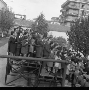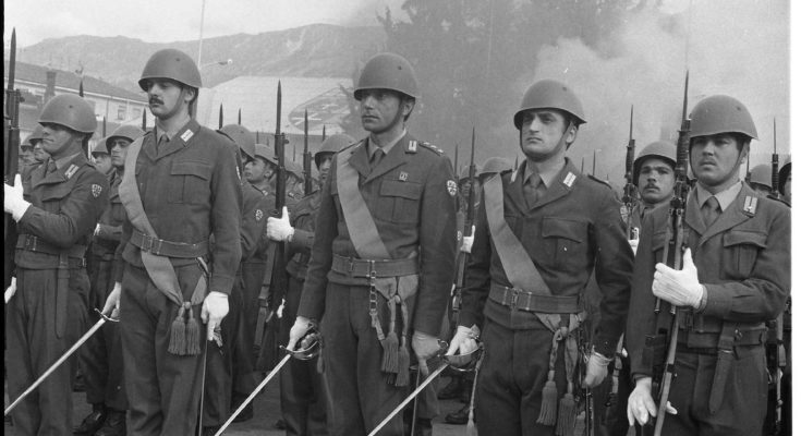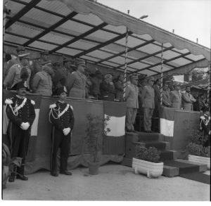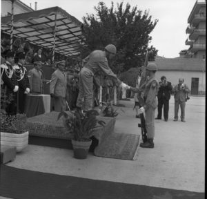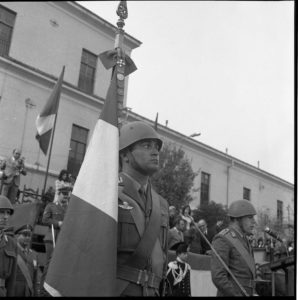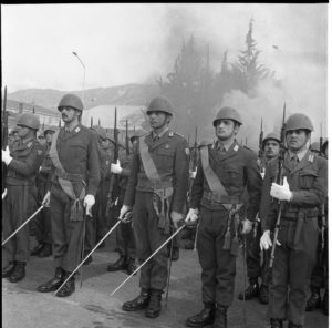 PATRIOTTICHE CERIMONIE DI 47 ANNI FA TRA FUMI COLORATI E BRACCIA TESE NELLA CASERMA INTITOLATA A BATTISTI (CESARE)