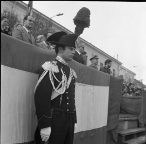 L’alta uniforme era davvero alta, quasi da coprire la visuale, con il pennacchio, al Commissario Giuseppe Leacche