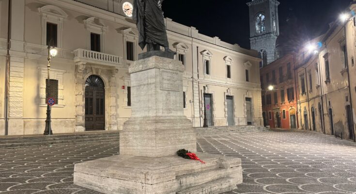 31 MARZO 2025 – Il colpo di coda dell’inverno ha raggiunto anche Piazza XX Settembre, sollevando l’alloro che coronava la statua di Ovidio e lasciandolo negletto sul porfido bianco e nero che disegna la pavimentazione. Ma prima che Fabio Spinosa Pingue e Anna Berghella riposizionassero il serto di aglio sulla testa del Vate, un’anima generosa ha raccolto l’alloro e lo ha poggiato ai piedi della statua del Ferrari, meritato simbolo dell’arte del Sulmonese. Studenti del “Classico”, entusiasti di essere tornati nella sede storica, undici giorni fa si erano arrampicati sulla statua per cingere le tempie di un poeta con il suo stilo. Le intemperie nulla possono davanti alla solennità della meditazione ovidiana tracciata dal Ferrari, e cosicchè, parodiando la conclusione delle “Metamorfosi”, si può dire che, fino a quando ci sarà un’anima devota che raccoglierà l’alloro e lo riconsegnerà alla mia statua “vivam”, io vivrò.
