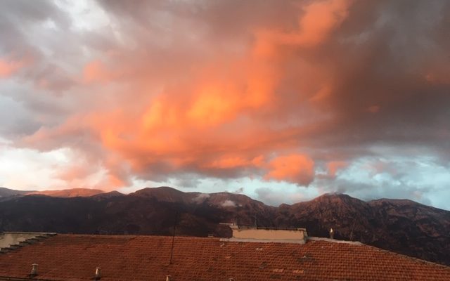 13 SETTEMBRE 2020 – Questo addensamento purpureo sul Monte Morrone smentisce il detto che dove c’è fumo c’è anche fiamma. Sembra di essere tornati all’incendio di tre anni fa, e invece è solo il dipinto di una sera di settembre, caratterizzato dal riflesso del sole che sta per tramontare sul lato opposto della Valle Peligna. E così fa tirare un sospiro di sollievo…