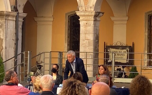 23 SETTEMBRE 2021 – Il nome “Sulmona” figura già in alcune sentenze della Corte di Cassazione nell’ambito delle città interessate dalla forza espansiva delle attività mafiose e, quindi, direttamente ad esse collegate. Sotto altro aspetto, chiedersi se una comunità sia impoverita e, quindi, bersaglio di quella forza espansiva, oppure se sia diventa povera perché già completamente posseduta dai mafiosi è interrogativo anacronistico che ha da tempo una risposta: “La mafia agisce come il parassita sull’organismo che lo ospita: assorbe energia e nutrimento fino a quando non viene allontanato” ha detto oggi nel cortile del palazzo comunale il sen. Nicola Morra, presidente della commissione parlamentare antimafia. Come dire: quando ti viene il dubbio se la tua fragilità, la tua debolezza, dipendono da qualche parassita, ce l’hai già addosso e farà di tutto per rimanerci. Il guaio peggiore che possa capitare ad una società invasa dal parassita mafioso è giungerci a patti, perché questa finta soluzione non fa che perpetrare la condizione migliore per chi ambisce a vivere e prosperare a scapito “dell’organismo che lo ospita”. “La sconfitta consiste nel pervenire alla giustificazione di una trattativa” ha detto Morra nei minuti nei quali una corte d’assise d’appello ha confermato che la trattativa tra Stato e mafia c’è stata, negli anni dal 1992 al 1994 (tanto che i boss sono stati condannati), ma non è stata intrattenuta per fini diversi dalla “salute della repubblica” (di modo che poliziotti e politici sono stati assolti perché il fatto non costituisce reato).