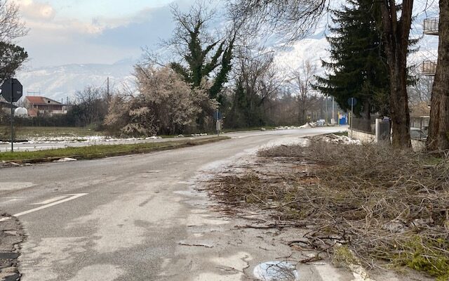 Nella foto: i rami spezzati all’imbocco di Via della Badia dopo otto giorni dalla nevicata.