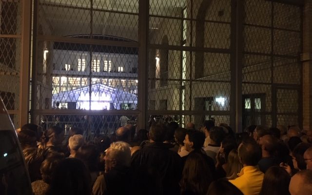 Per oltre mezz’ora dall’inizio dell’intervento di Sgarbi, nell’ambito delle manifestazioni per il centenario dell’impresa di Fiume, personale di varia fattezza e divisa si è avvicendato presso il cancello est (nella foto del titolo) per assicurare che prima o poi tutti sarebbero entrati, appena completate le operazioni di verifica del rischio per il limite di capienza.