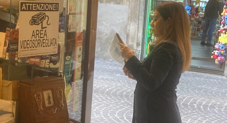 19 OTTOBRE 2023 – La consigliera Teresa Nannarone mentre apprende dai giornali del mattino quali sarebbero le finalità delle sue scelte. E quello che dovrebbe fare per il bene della città. E delle mense.