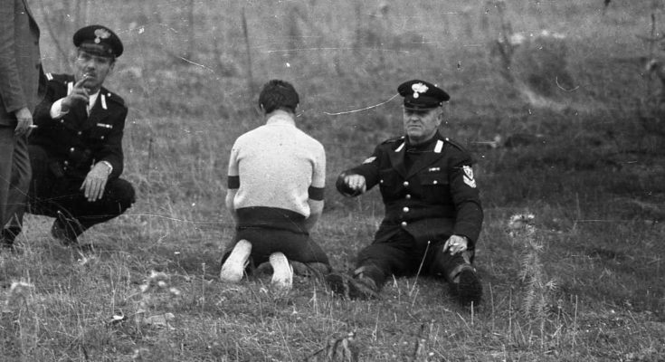 14 NOVEMBRE 2018 – Era seduto in un prato dell’Aremogna, in ginocchio per tenere le manette, che appena si vedevano, e non perdere equilibrio; di fronte a lui un carabiniere seduto un po’ più su, che sembrava gli facesse compagnia, ma in realtà lo teneva sotto controllo in attesa dei rinforzi, dopo averlo acciuffato nella fuga disperata tra le montagne (foto del titolo).