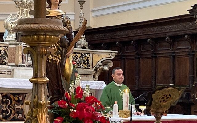 Parla di come i figli non debbano cercare i genitori solo per essere aiutati a pagare le bollette e a ricevere sussidi. Motivi di giustificazione i giovani dell’alba del terzo millennio ne avrebbero, perché non hanno scelto loro di avere trent’anni in una società ingessata e priva di energie, tetragona al rinnovamento e alla accettazione della importanza di nuove professioni, di nuovi impieghi, di posti di lavoro meno ortodossi. Ma la tendenza ad una pigrizia diffusa va in senso contrario allo spirito del servizio che solleva dagli egoismi; anche in un microcosmo come quello di Sulmona, nel quale la disoccupazione è più alta che altrove. Dall’altare della chiesa più centrale della città, che tutti i turisti scambiano per la cattedrale, tanto è sontuosa e affascinante, il parroco di un coacervo di chiese raggruppate in un centro storico spopolato ha appena affrontato il tema di un egoismo: quello di pensare a conservare una bella casa e a non pensare al decoro di una città che sprofonda nell’abbandono.