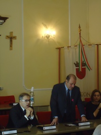 12 DICEMBRE 2011 – Con una manovra che non è neanche abile e rimane solo mistificatoria, il sindaco di Sulmona (nella foto mentre parla alla cerimonia di consegna della “sentenza” su Ovidio, qualche minuto prima di essere aggredito verbalmente e inseguito da un gruppo di contestatori) viene fatto passare per chi lascia l’auto per il Corso e non si cura di parcheggiarla da cristiano, approfittando della sua figura di primo cittadino. E viene indicato come cattivo esempio: reprobo davanti ai turisti, che non si capacitano di come in una città civile il sindaco parcheggi in modo da ostacolare il traffico. La macchina in effetti sabato sera in Largo degli Orefici c’era. Ma era successo qualche cos’altro che forse andrebbe riferito. Avvisato, al Quadrivio, di un assembramento davanti al portone del Comune, Fabio Federico ha seguito l’invito di “appoggiare” l’auto un po’ più avanti, lungo il Corso. Quindi è andato al municipio, da solo, ed ha affrontato il gruppo di contestatori, salutandoli a braccia aperte e continuando fino all’aula magna dove stava per svolgersi la cerimonia di consegna della “sentenza” su Ovidio. Finita la cerimonia, si doveva recare all’Annunziata, ove era in programma la seconda parte delle celebrazioni per Ovidio. E si è incamminato insieme al Presidente del Consiglio comunale, mentre lo incalzavano i contestatori (come riferiamo in altro servizio). L’auto, ovviamente, rimaneva dove era stata parcheggiata. Poi pare sia stata graffiata e, comunque, ad attendere il sindaco c’era un gruppo di persone che protestava per il parcheggio.