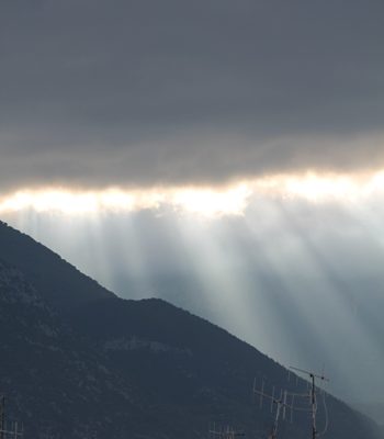 2 SETTEMBRE 2014 – Ha provato ad imporsi al suo sorgere; ma il sole ha dovuto rinunciare subito, viste le coltri di nuvole che hanno avvolto Majella e Morrone. Nella foto i primi raggi del giorno si insinuano in una fessura dei massicci nuvolosi sopra Pacentro.
