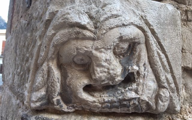 11 NOVEMBRE 2017 – Useremo questa immagine di un mascherone palesemente disgustato per segnalare le cose brutte, che meritano una smorfia. Viene sempre dal bacino imbrifero che confluisce nella Valle Peligna e poi va verso Pescara come l’acqua del Vaschione: più precisamente si trova a Campo di Giove, davanti al Comune. Ci serve a disgustarci di quello che ha detto la sindaca, che sfodera il suo diritto (anzi dovere, alla luce di una equivocatissima “privacy”, compiutamente smentita dall’avv. Elisabetta Bianchi in Consiglio comunale) di non sapere chi fossero quelli che stipulavano la convenzione per la cooperativa “Creaservice”, tra i quali un detenuto per omicidio e tentato omicidio, che espia ancora la pena, sebbene in regime diverso dalla custodia in carcere. Ecco, con una sindaca così anche la pietra cambia forma e, dall’elegante assetto del mascherone del “Vaschione”, diventa quello che vediamo in questo articolo e che continueremo a vedere ogni volta che politici, imprenditori, gente di ogni specie ci diranno queste cose.