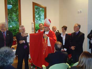 Il percorso per giungere alla realizzazione del “centro” a Goriano Sicoli è stato rievocato dal Vescovo di Sulmona, Mons. Angelo Spina (nella foto del titolo), che ha ricordato come all’indomani del terremoto del 6 aprile gli si era presentata una Valle Subequana profondamente ferita; per giunta, anche costretta a non poter chiedere troppo, vista la grande tragedia che aveva colpito la zona dell’Aquila. Il presule ha anche narrato, passo dopo passo, i laboriosi contatti con la comunità peligna a Boston, il concorso di tante idee che hanno portato poi, nel giro di poco più di un mese dalla decisione definitiva, ad innalzare una struttura essenziale per la gente di Goriano. Alla cerimonia era presente il padre di Mark, Filippo Frattaroli, che è nato a Sulmona e che a Boston ha intrapreso molte iniziative imprenditoriali nel settore della ristorazione. E’ rimasto legato in modo indissolubile alla sua città, dove è tornato per sostenere con il suo entusiasmo molte idee nel settore turistico: per dimostrare come si possa essere concreti pur vivendo ormai da decenni oltre Oceano.