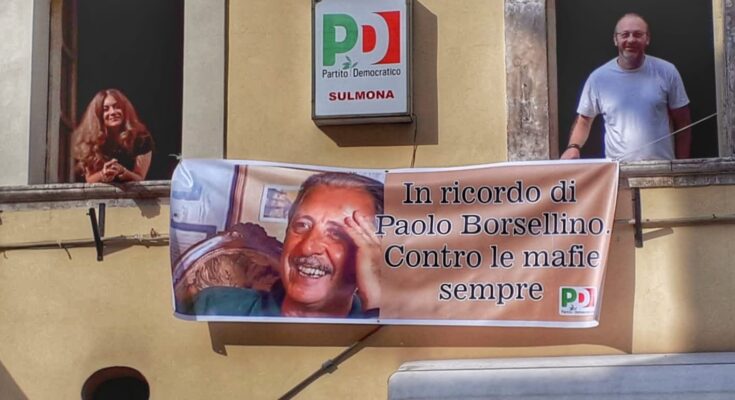Paolo Borsellino è stato ricordato oggi a Sulmona nella sede del Partito Democratico, sul Corso, dove è stato issato uno striscione che reca una foto del suo sorriso solare e accanto la scritta: “In ricordo di Paolo Borsellino Contro tutte le mafie sempre”.