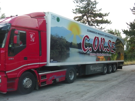 Estate vuol dire per la ss 17 anche il continuo trasporto di frutta, fin dalla Piana del Sele (nella foto accanto al titolo), con tir che sono opere d’arte e che fanno a loro volta da sfondo improbabile ai pini della antica strada reale degli Appennini. Sulla natura di un giorno di fine luglio v. : “In bicicletta tra i maestosi dirupi e le fonti miracolose della Statale 17” nella sezione NATURA di questo sito.