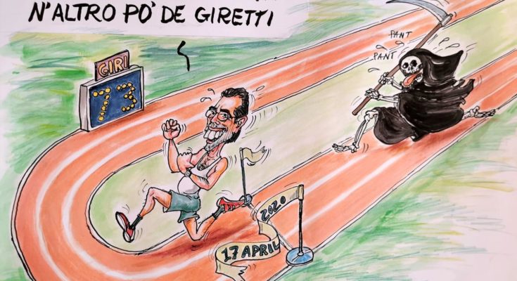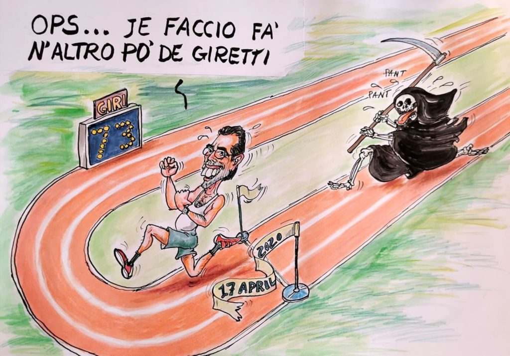 21 APRILE 2020 – Insuperabile come sempre, Mario Maiorano riflette sulla sua vita. Questa volta è doppiamente insuperabile, perchè ha la falcata ampia rispetto a quella dell’avversaria, che vorrebbe sfoderata la sua di… falciata.