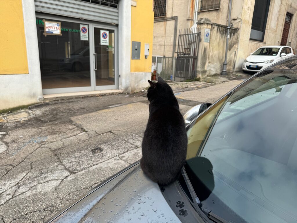 4 GENNAIO 2025 – S’è rifatta viva la gatta che suggerisce i temi al “Vaschione” e stamane stava su un’altra macchina, all’imbocco di Via Porta Romana, a godersi il tepore di un sole stentato, proprio come un anno fa, e il caldo di un cofano in parcheggio.