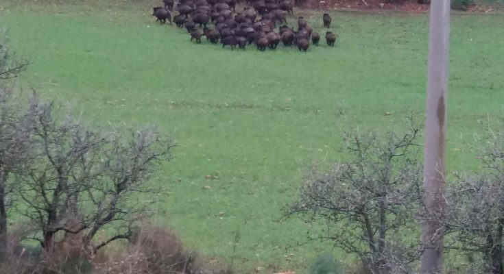 Nella foto del titolo, che proprio Adriano Marrama ci ha regalato,  l’invasione di cinghiali in un campo coltivato della valle subequana