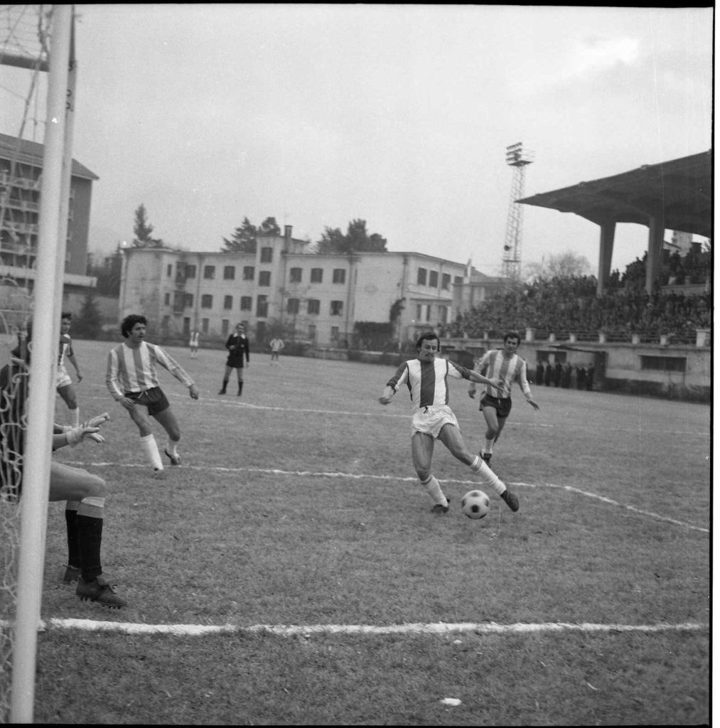 17 GIUGNO 2020 – Contro le pugliesi i biancorossi del Sulmona sfoderavano la miglior forma. Contro il Nardò avevano sempre conti aperti, ma anche contro il Barletta. Contro il Manfredonia in questo nuvoloso pomeriggio la squadra aveva il sostegno di un pubblico appassionato, come solo quello del “prato” sapeva essere. E sapeva mettersi in posa davanti al fotografo per immortalare un giorno memorabile, arricchito dai due gol che la pellicola 6×6 de “Il Tempo” con la “Minoltacord” ha catturato con grande precisione e con il 250° di secondo che tiene sospeso il pallone come se lo sostenessero ali d’angelo. Bei ricordi di un Sulmona che fu agli inizi degli Anni Settanta: saranno consegnati gratis a Nicola De Deo, nipote dell’infaticabile presidente dott. Alfonso, che sta curando la pubblicazione di un volume.
