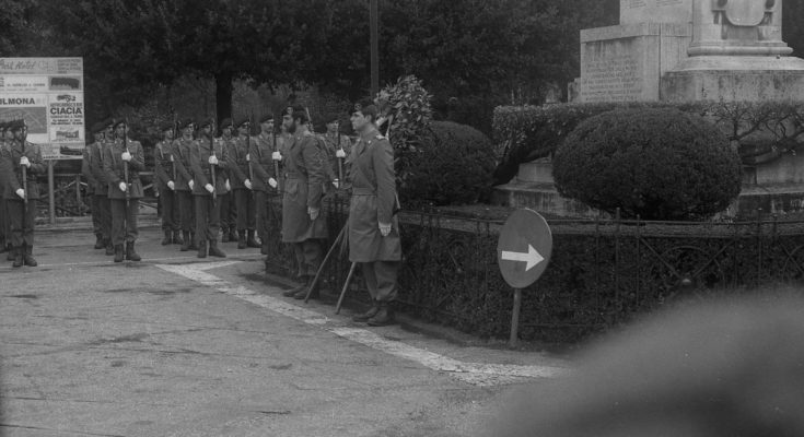 13 APRILE 2020 – Non era un ermo piazzale e, quindi, poco richiamava il colle di Leopardi; però il valicabile confine di quella siepe evocava gli sconfinati spazi ove avevano combattuto gli Italiani nati a Sulmona e, a rimirarlo, si poteva meditare sui sovrumani silenzi che ormai avvolgevano la memoria di quelle vita spese nell’ultimo assalto. Quando i soldati si recavano a rendere omaggio il 4 Novembre o il 2 Giugno la città non era ridotta a un fiorire spontaneo di sterpaglie e di erbacce e bravi artigiani rimodulavano quasi perfettamente i globi di quella siepe che aumentavano la solennità del monumento ai Caduti.