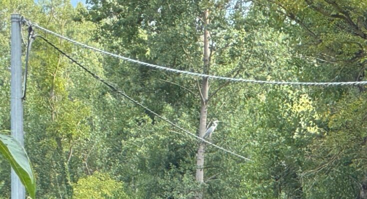 9 SETTEMBRE 2024 – Paesaggio e fauna del Sagittario, che si avvia ad alimentare il Pescara, debbono aver attratto questo airone cinerino in località “Acqua Chiara”, tra Sulmona e Pratola, abbastanza distante dal puzzo del depuratore di Santa Rufina. Pesci, rane, girini, bisce d’acqua, crostacei, molluschi, insetti acquatici, piccoli mammiferi e piccoli di altri uccelli sono le leccornie che il magro uccello dalle grandi ali cerca incessantemente, facendo lo slalom tra maestosi pioppi che crescono incontrollati nella zona.