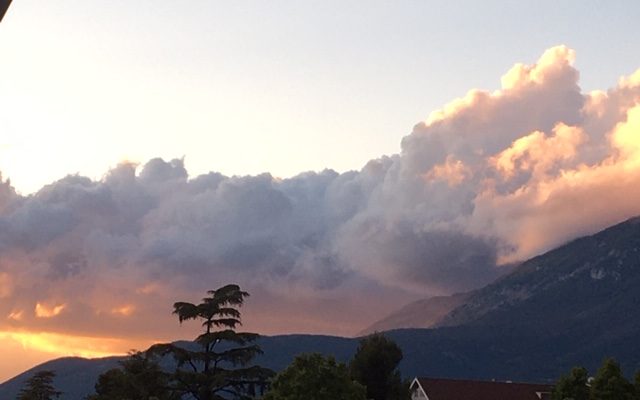 27 MAGGIO 2020 – Continua l’ascesa dell’albero più alto della villa comunale, che sta per raggiungere il secolo di vita (la “Villa” risale agli anni Venti del XX secolo), ma non disdegna di solleticare con la sua cima le nuvole candidamente ammassate verso il Morrone dirimpetto al tramonto