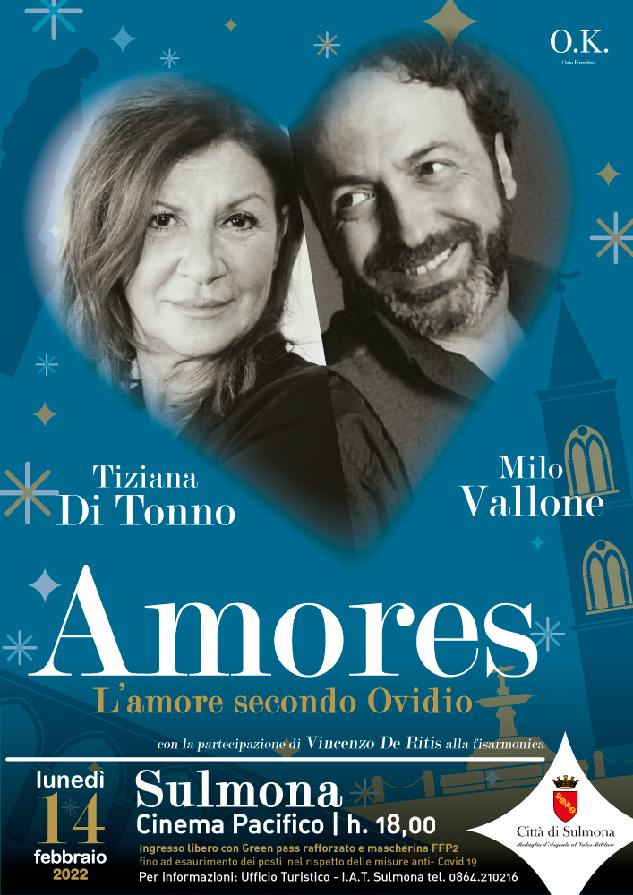 14 FEBBRAIO 2022 – Non è solo l’amore lieto ed ammiccante quello che Tiziana Di Tonno e Milo Vallone propongono al teatro “Maria Caniglia” di Via De Nino oggi alle ore 18. C’è anche l’amore profondo e tormentato, ma puro come un giuramento che viene mantenuto nonostante la rottura dell’altro… contraente e che si trasforma nelle tragiche imprese delle “Eroine”. Quindi il titolo “Amores” è solo un approccio al San Valentino popolare che viene celebrato oggi. “E’ un percorso ironico e poetico all’interno della letteratura amorosa del grande autore latino Ovidio” spiegano gli attori di questa “mise en espace”. Due anni fa Tiziana Di Tonno e Mino Vallone avevano il coraggio di proporre Ovidio in uno spettacolo nel non-teatro vicino ad un bar e sotto un condominio, come spesso accade a Pescara, a dimostrazione che il desiderio di coniugarsi con il Vate sulmonese è forte proprio in una città ancora in cerca della sua dimensione culturale eppure molto attiva su questo fronte.
