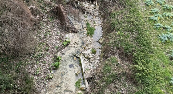 25FEBBRAIO 2024 – Neanche un ruscello: a questo si riduce il Vella e basta vederlo dal Ponte di San Panfilo. Eppure intorno a questo “fiume” è stato inventato un “parco”.