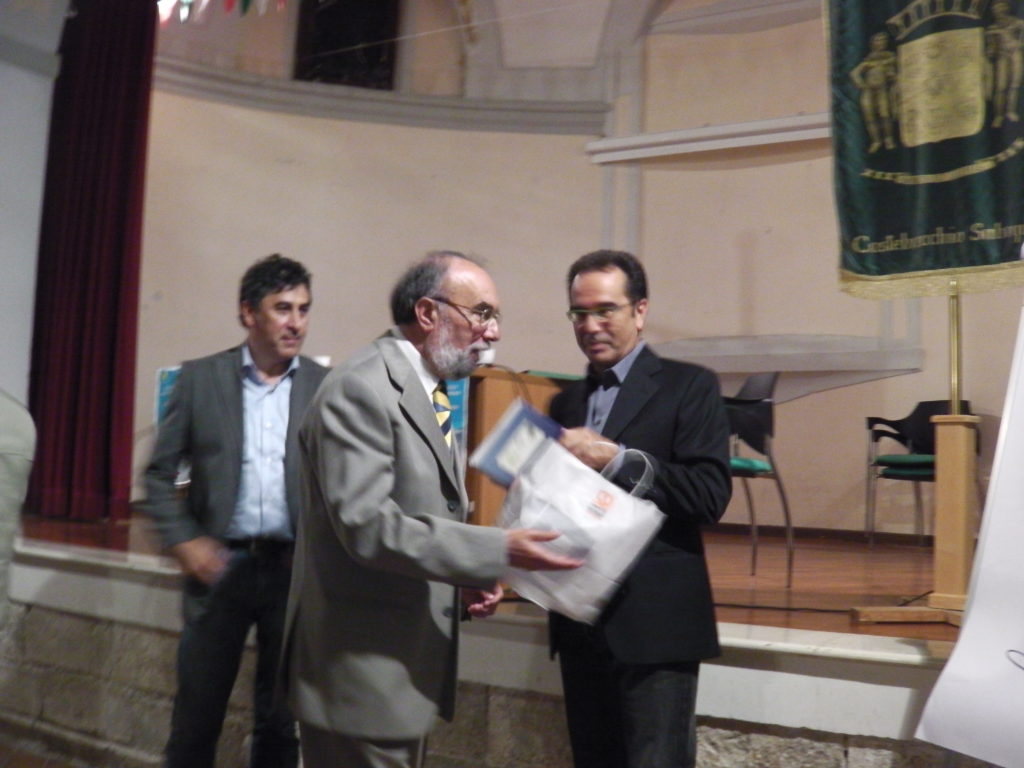E come può essere definito il suo attuale periodo creativo? “Sono nella fase di realizzazione di un’opera ponderosa, che riguarderà forse cinquecento “facce” di sulmonesi: forse di più se avrò tempo e spirito, perchè non pongo limiti alla Provvidenza. Penso di realizzare una galleria di personaggi per i quali, dopo un primo approccio strettamente ludico e, quindi, dopo la prima risata più o meno a cuore aperto, si potrà percepire il carattere del disegnato, si potrà ricordare quello che è senza tante parole. Che è anche un piacevole averlo vicino”. (Nella foto a sinistra il prof. Emiliano Splendore consegna a Mario Maiorano una targa a ricordo della serata a Castelvecchio Subequo)